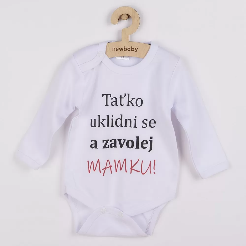 Originální bavlněné kojenecké body s dlouhým rukávem New Baby, s vtipným nápisem Taťko uklidni se a zavolej MAMKU! Barvy použité k potisku jsou… Celý popis