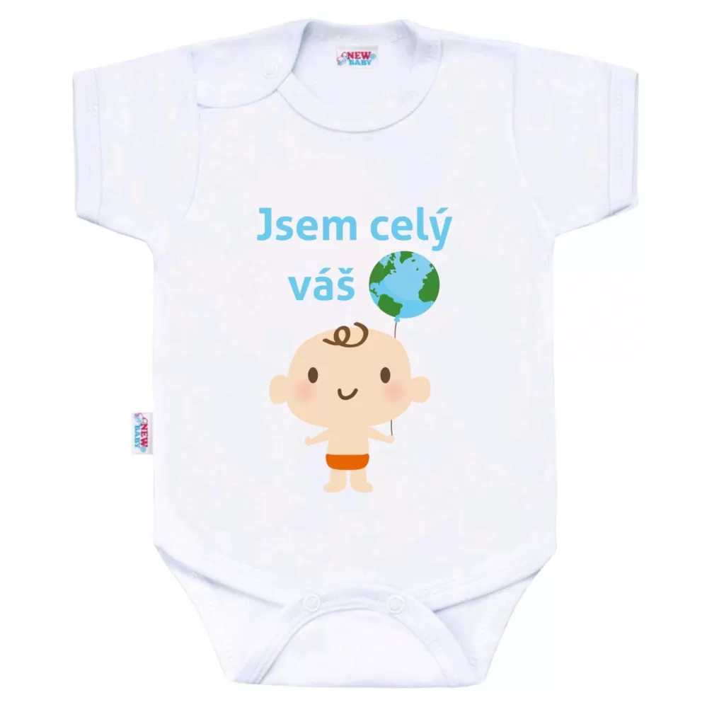 Originální bavlněné kojenecké body s krátkým rukávem New Baby s nápisem Jsem celý váš a obrázkem. Barvy použité k potisku jsou certifikované a vhodné pro miminka. Je vyrobeno z příjemného a kvalitního materiálu, ve kterém se bude Vaše miminko...