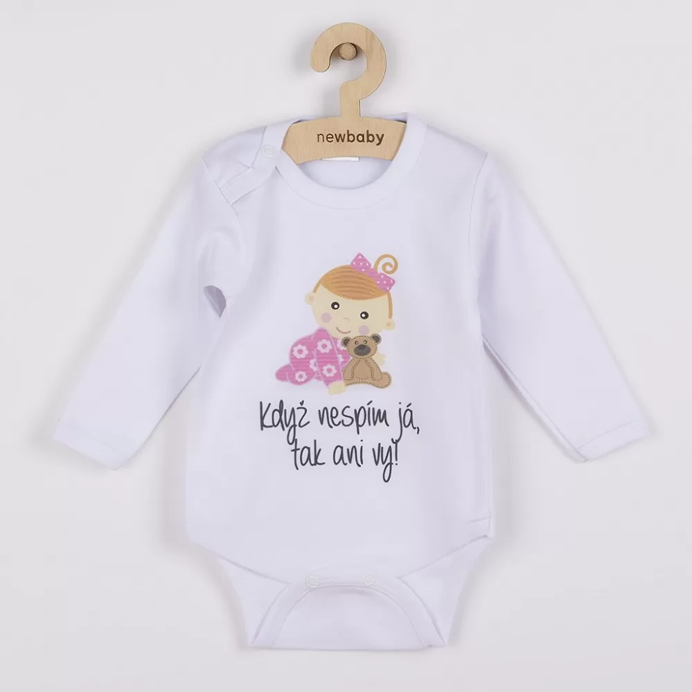 Originální bavlněné kojenecké body s dlouhým rukávem New Baby, s vtipným nápisem Když nespím já, tak ani vy! A obrázkem roztomilé holčičky. Body má… Celý popis