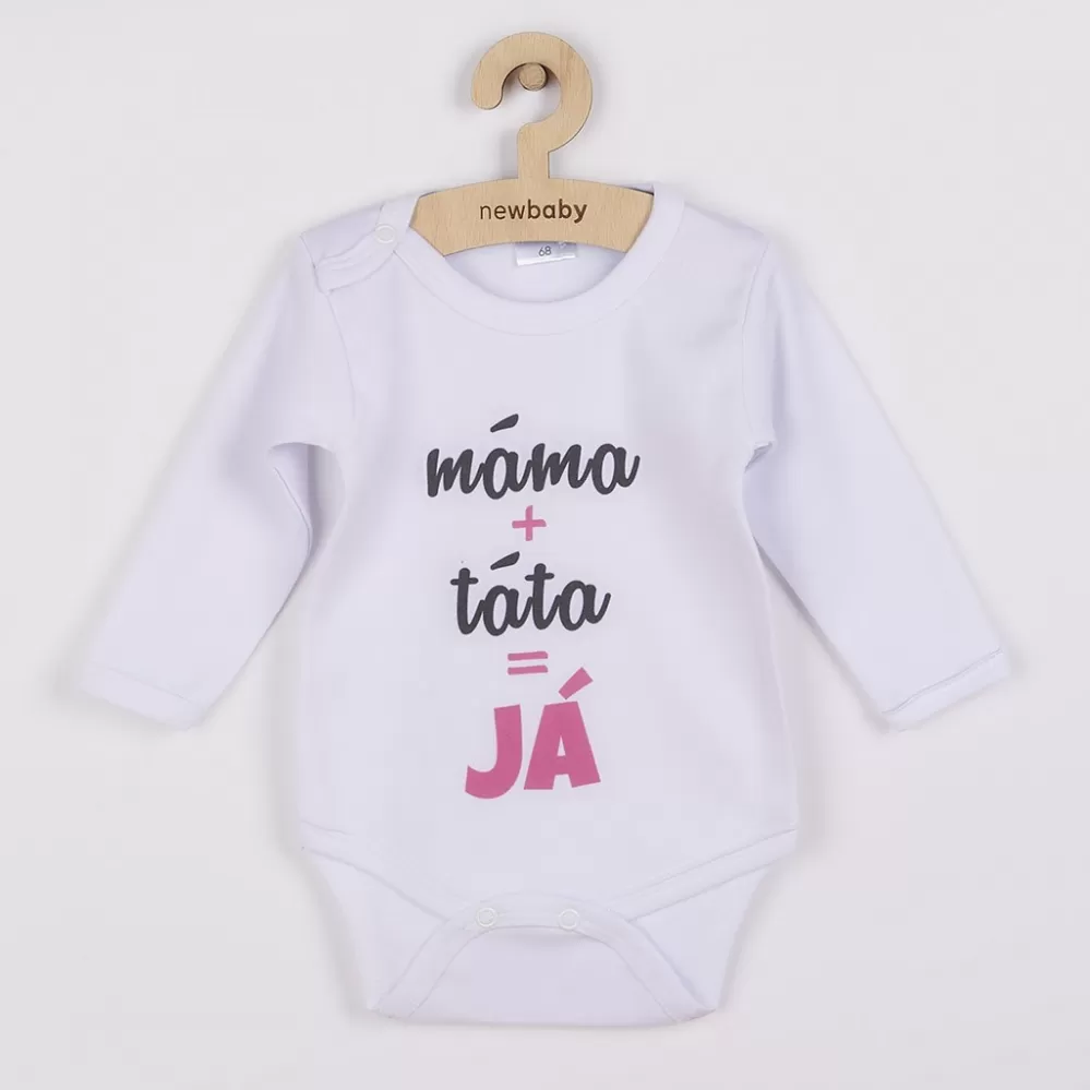 Originální bavlněné kojenecké body s dlouhým rukávem New Baby, s vtipným nápisem máma+táta=JÁ. Barvy použité k potisku jsou certifikované a vhodné pro miminka. Je vyrobeno z příjemného a kvalitního materiálu, ve kterém se bude Vaše miminko cítit příjemně. Body má zapínáni na cvočky na ramínku a mezi nožičkami, což usnadňuje oblékání a přebalování. Dopřejte Vašemu miminku vyniknout v originálním body. Složení: 100% bavlna. Rozměry: obvod kolem hrudníku cca 40 cm, délka rukávu cca 22 cm, celková délka cca 36 cm.