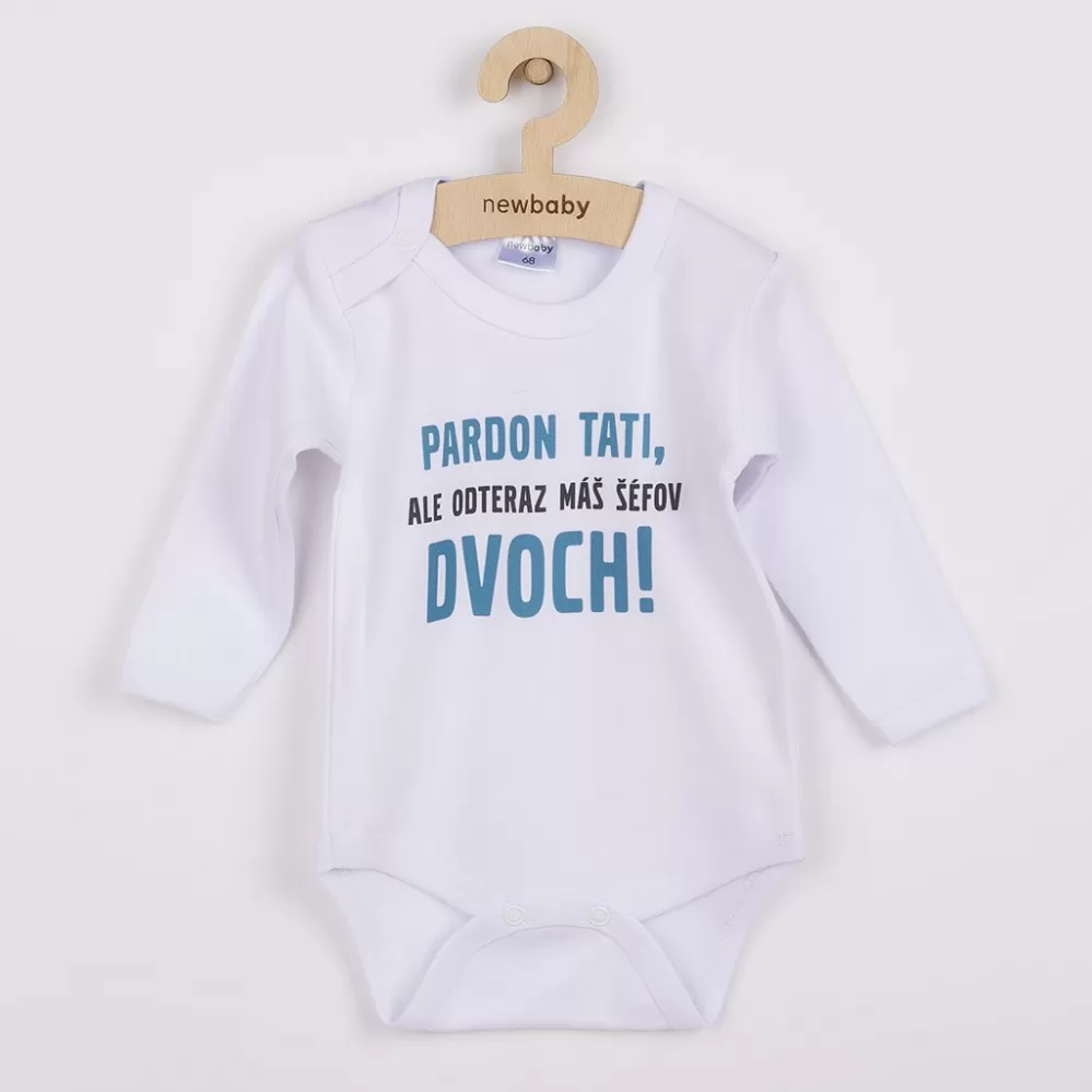 Originální bavlněné kojenecké body s dlouhým rukávem New Baby, s vtipným nápisem PARDON TATI, ALE ODTERAZ MÁŠ ŠÉFOV DVOCH! Barvy použité k potisku… Celý popis