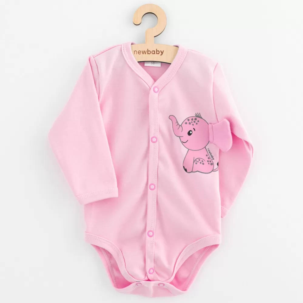 New Baby Kojenecké celorozepínací body s dlouhým rukávem Happy Elephant pink New Baby Happy Elephant Růžová