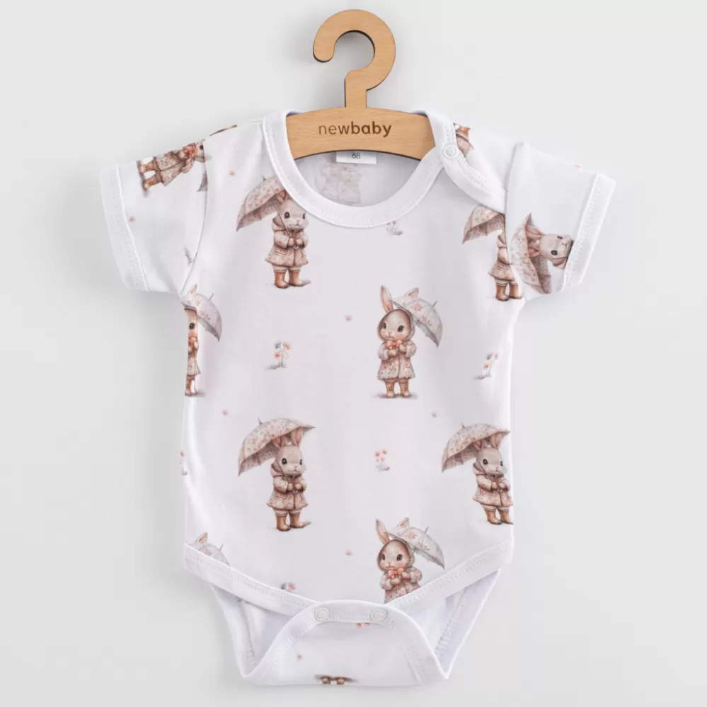 Krásné bavlněné kojenecké body s krátkým rukávem české značky New Baby For Babies pro miminka. Dětské body je celopotištěné nápaditým dětským motivem. Praktické zapínání na cvočky na ramínku a mezi nožičkama velmi usnadní oblékání a přebalování.