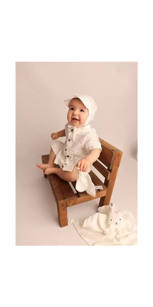 Letní mušelínová čepička s kšiltem české značky New Baby Arthur. Čepička ochrání hlavičku před prudkým sluncem a díky kšiltu, který udělá stín nespálí tvářičku a chrání oči dítěte před sluncem. Je krásně tvarovaná na ouška, zavazuje se na tkaničky, netlačí a bude dobře držet na hlavičce miminka. Mušelín je jedna z nejčistších, nejjednodušších a nejjemnějších tkanin na světě. Jemně tkaný prodyšný materiál je tak dokonalý, že si jej zamilují děti po celém světě. Lehká struktura umožňuje mušelínu „dýchat“ a zajišťuje dostatečnou cirkulaci vzduchu, čímž snižuje riziko přehřátí. Tato vlastnost pomáhá udržet Vaše dítě v pohodlí, bezpečí a rodiče v klidu. Mušelín je velmi odolný a to tak, že bez problémů zvládá opakované praní a postupem času je lehčí a jemnější. Složení: 100% bavlna. OEKO-TEX STANDARD 100.