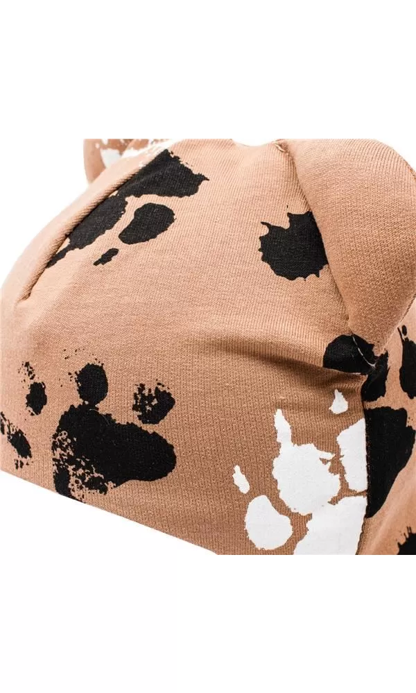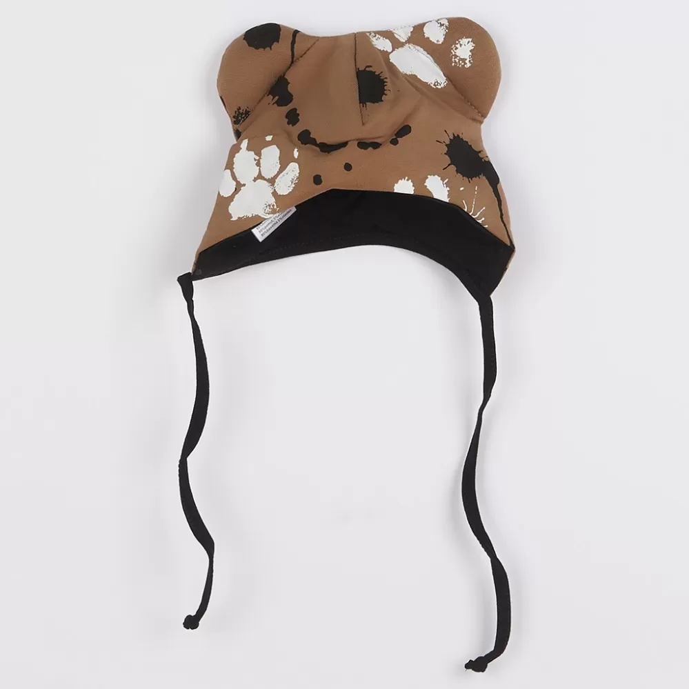 New Baby Kojenecká bavlněná čepička s oušky tlapka tmavě