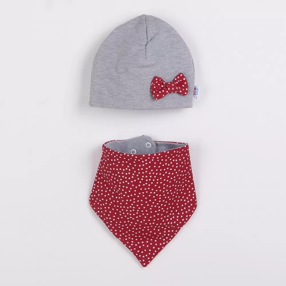New Baby Kojenecká čepička s šátkem na krk Missy šedo-červená New Baby Missy červená