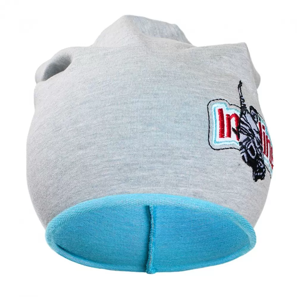 New Baby Podzimní dětská čepička In-line šedo-tyrkysová