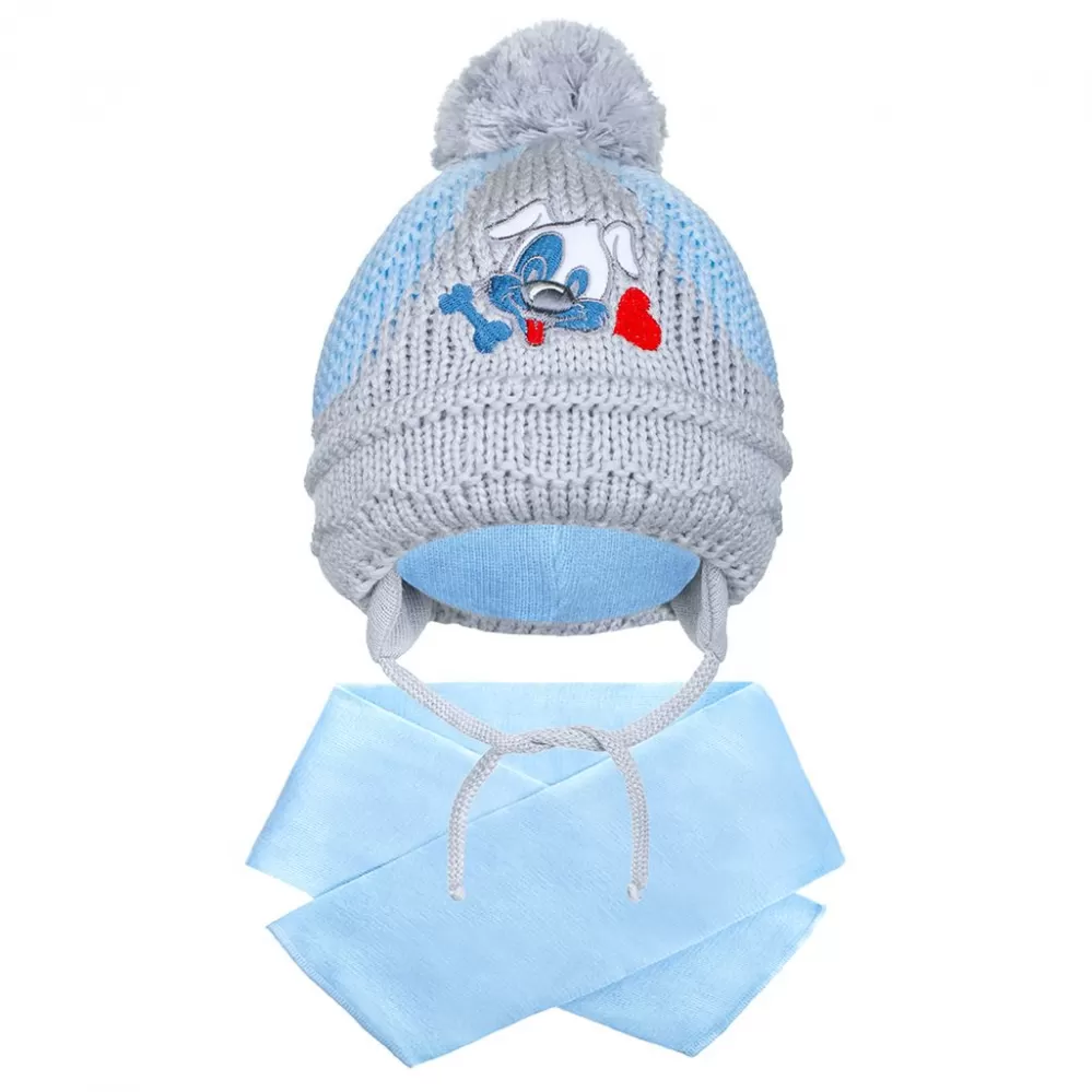 New Baby Zimní dětská čepička se šálou pejsek Zimní čepice Šedá