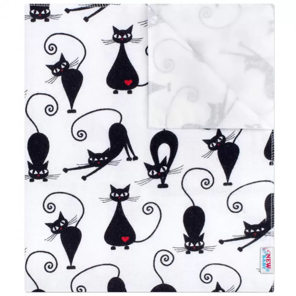 New Baby Nepromokavá flanelová podložka bílá s černou kočkou