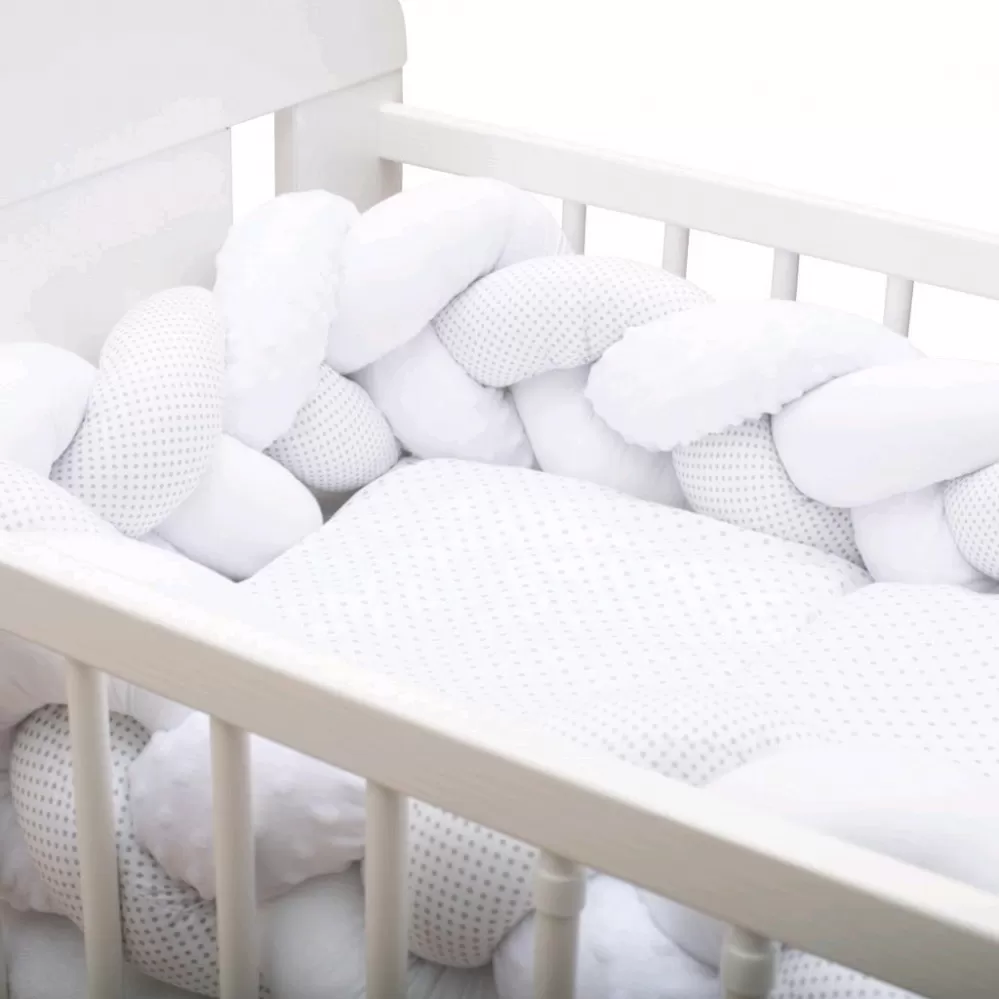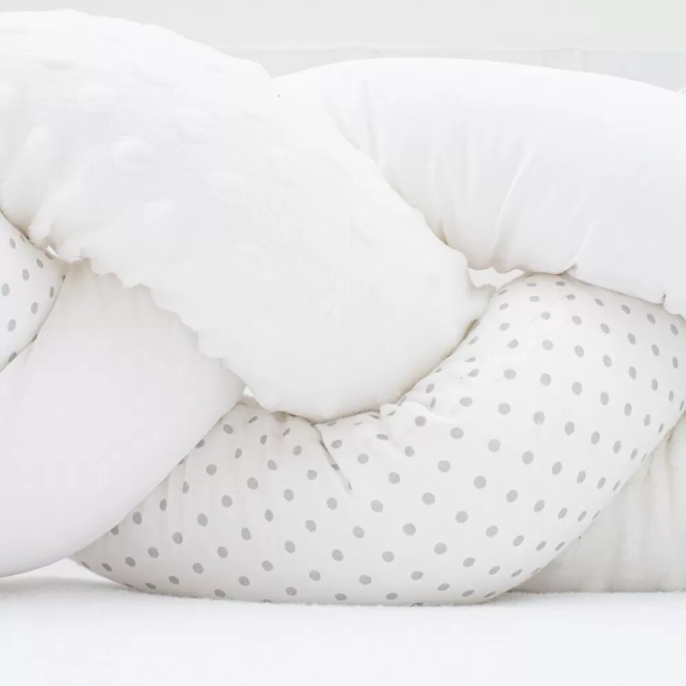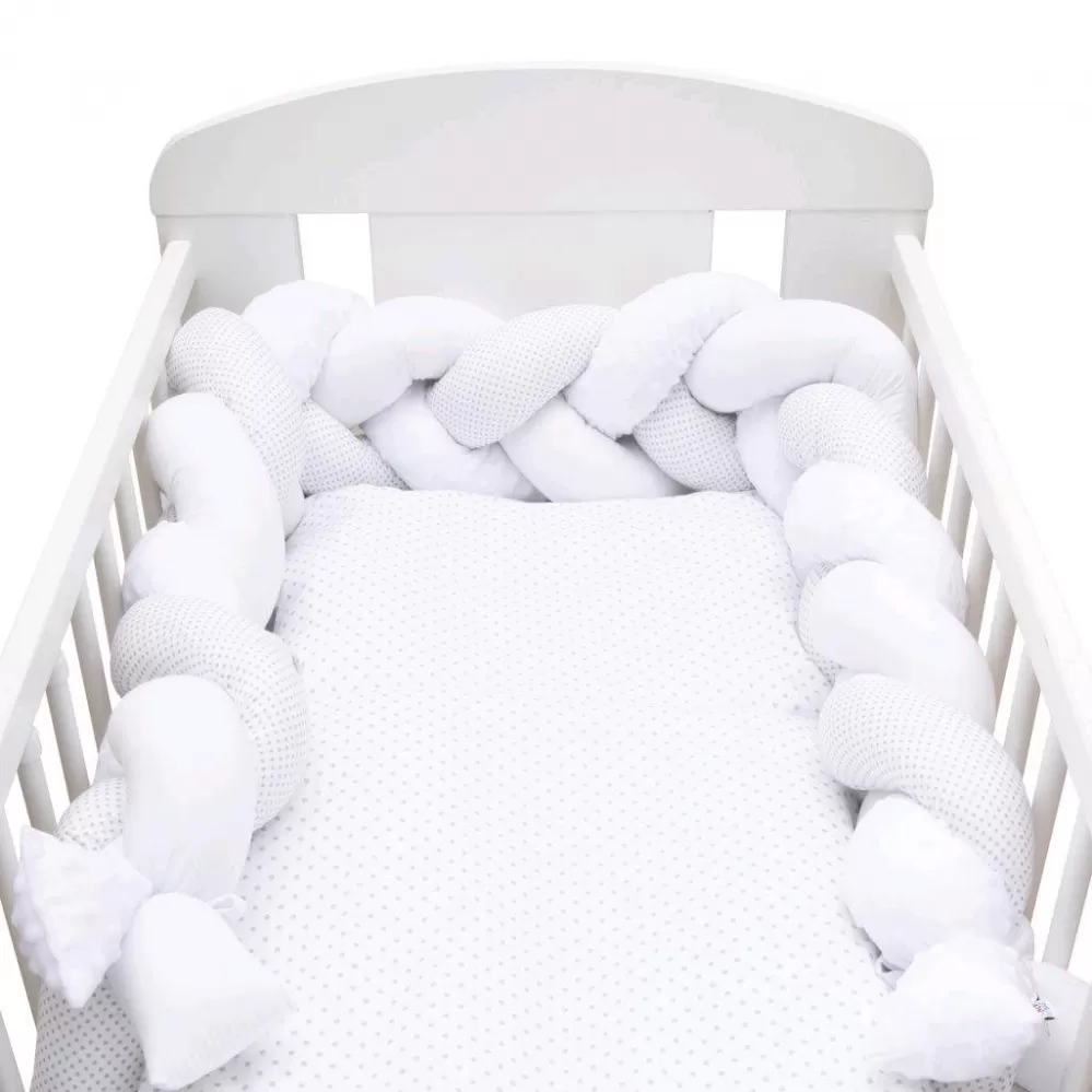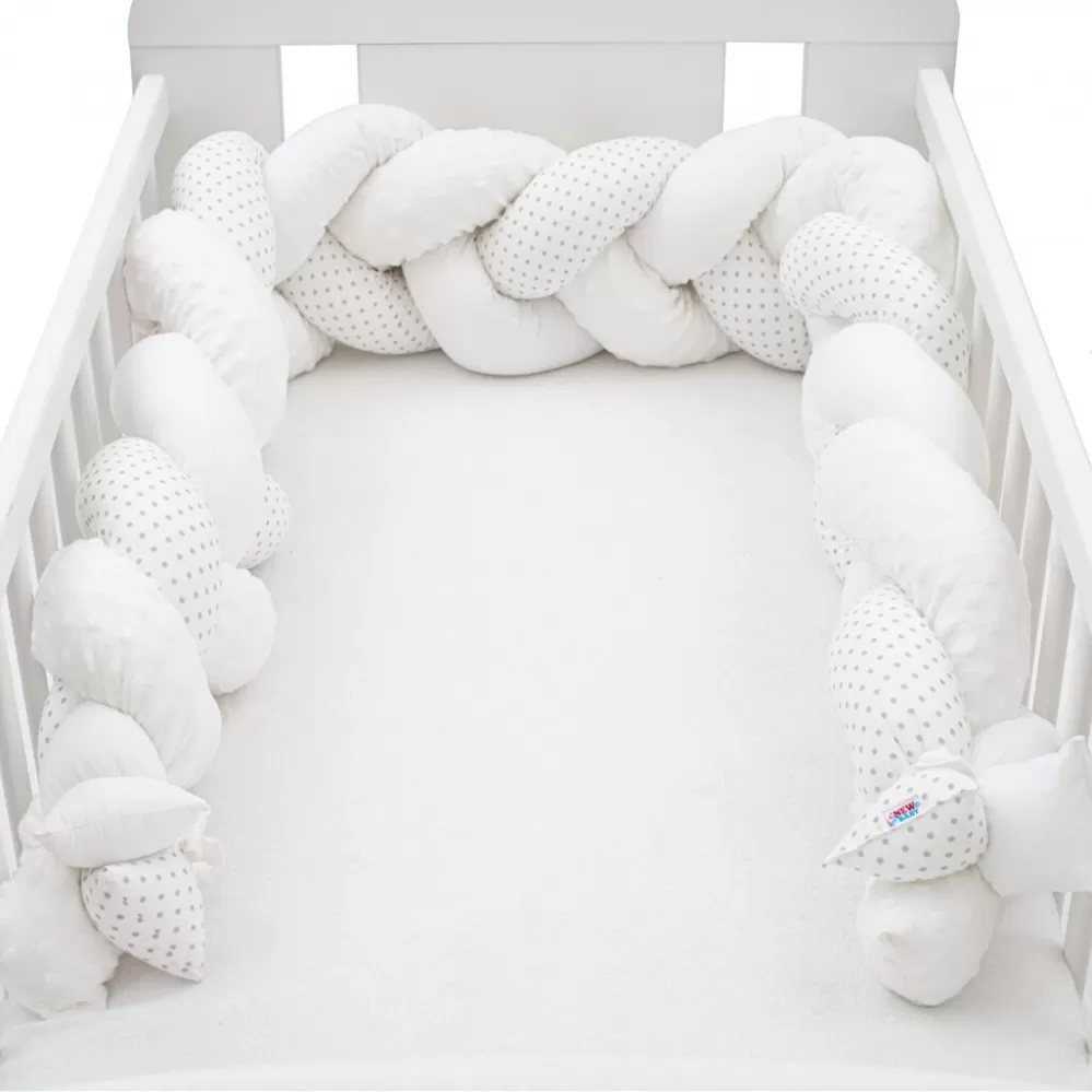 Heboučký a praktický pletený cop české značky New Baby je moderní alternativou tradičního nebo polštářového mantinelu nejen do dětské postýlky. Všechny tři prameny jsou vyrobeny z velmi kvalitního bavlněného materiálu, minky a antialergické polyesterové výplně a ručně spletené do copu. Můžete jej použít v postýlce, kolébce, kde chrání dítě před tvrdými příčkami postýlky a izoluje od studené stěny. Mantinel se přizpůsobí každé postýlce a pomocí tří přiložených stuh jej snadno upevníte. Starší dítě jej může využívat pro zábavu nebo jako originální dekoraci dětského pokoje.