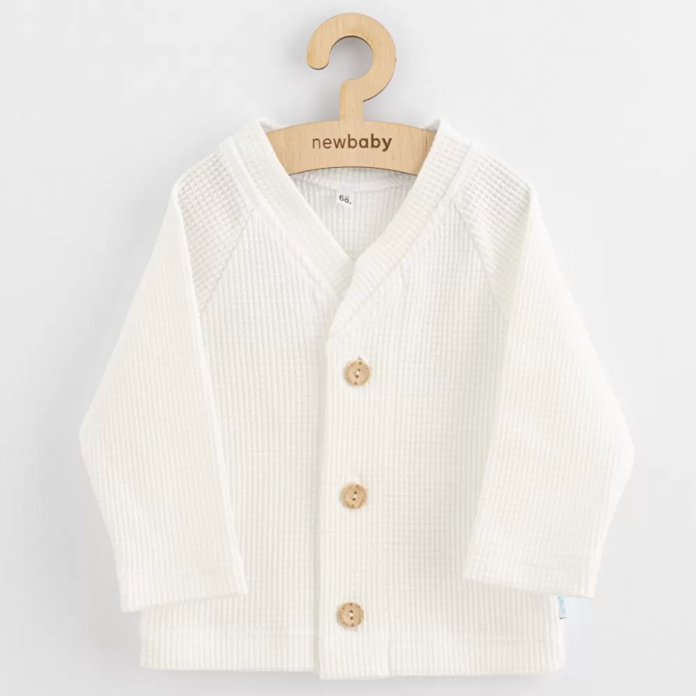 Elegantní kojenecký kabátek-svetřík české značky New Baby Oliver. Chlapecký kabátek s výstřihem do V má praktické zapínání na knoflíky. Krásné dřevěné knoflíčky dodají kabátku elegantní vzhled. Díky vzoru a vzhledu kabátek hravě nahradí svetřík ve výbavičce chlapečků. Je vyroben z vysoce kvalitního materiálu. Vhodný pro celoroční nošení pro každý den i příležitost. Složení: 100% bavlna.
