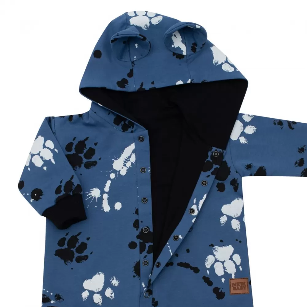 New Baby Kojenecký bavlněný overal s kapucí a oušky tlapka modrý New Baby Paw Modrá