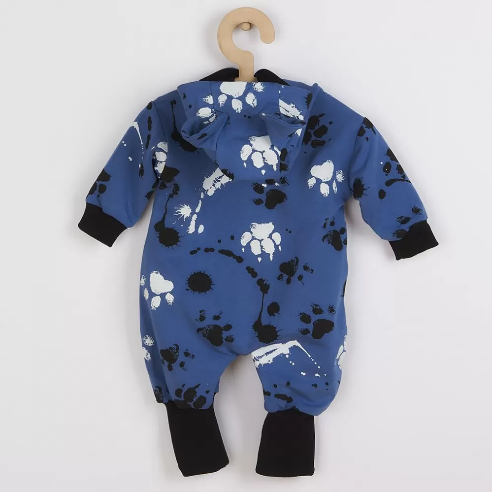 New Baby Kojenecký bavlněný overal s kapucí a oušky tlapka modrý