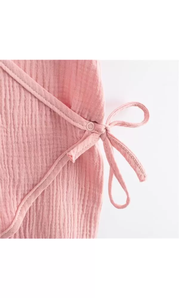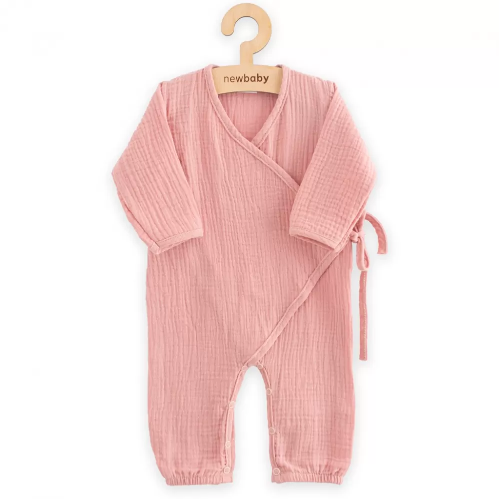 Stylový mušelínový overal s dlouhým rukávem české značky New Baby. Zavinovací overálek má praktické zavazování na boku na tkaničky, z vnitřní strany na cvoček a mezi nožičkama na cvočky což usnadní oblékání a přebalování. Na nohavičkách jsou jemné gumičky, které ale netlačí na nožičkách. Super stylový overálek rozzáří každé miminko.