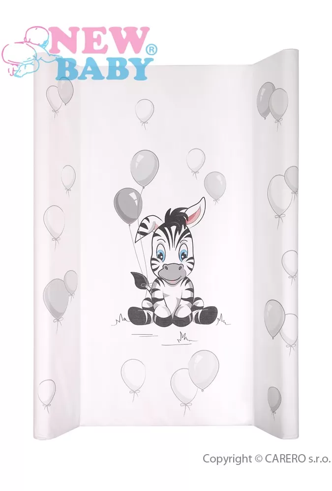 Praktická tvarovaná přebalovací podložka New Baby z nepromokavého, plastového materiálu s obrázkem zebry v příjemných pastelových barvách. Podložka má vyvýšené boční strany a lze jí použít na komodě či jiném místě k přebalování. Bez tvrdého podkladu. Rozměr: cca 50x80 cm, tloušťka cca 2 cm, výška hran 8 cm.