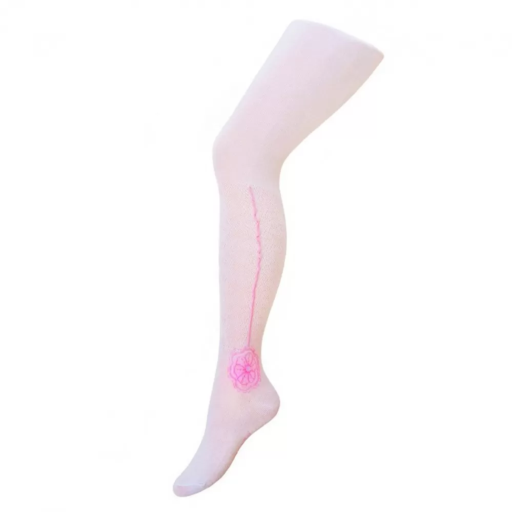 New Baby Dětské bavlněné žakárové punčocháče bílé s kytičkou