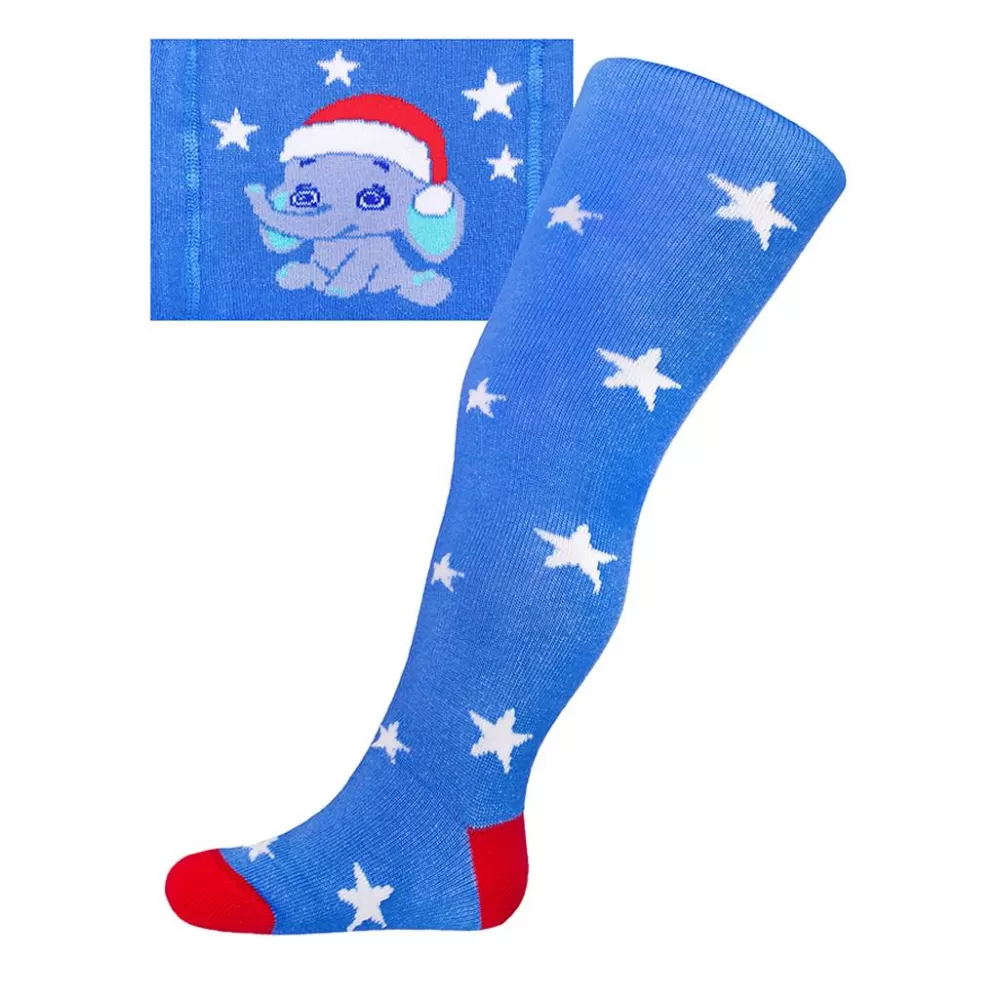 New Baby Vánoční bavlněné punčocháčky modré se slonem