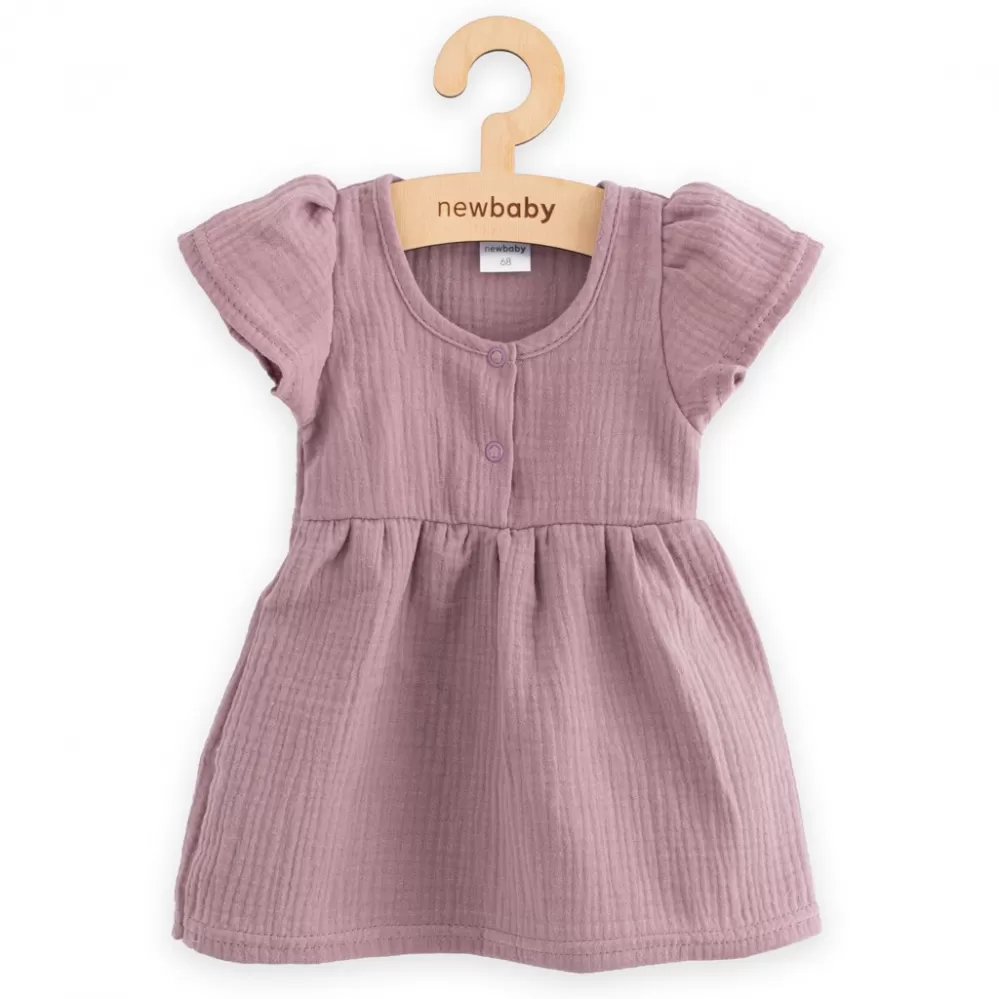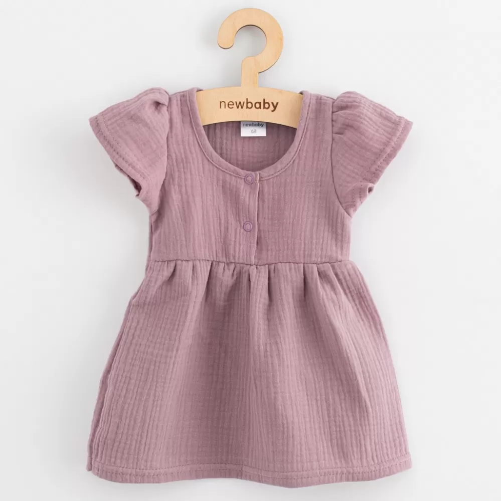 Módní mušelínové kojenecké šatičky české značky New Baby pro všechny malé parádnice. Šatičky jsou s krátkým rukávem ve tvaru písmene A. Spodní část má krásně nařasenou sukýnku. Zapínání na přední straně usnadní oblékání. Šaty mají velmi příjemňoučký, měkoučký a kvalitní materiál, který je vhodný pro miminka. Jsou lehounké a velmi příjemné při nošení. Pro New Baby je velmi důležitá spokojenost zákaznika a právě proto vám nabízíme naši kvalitní letní mušelínové šatičky.