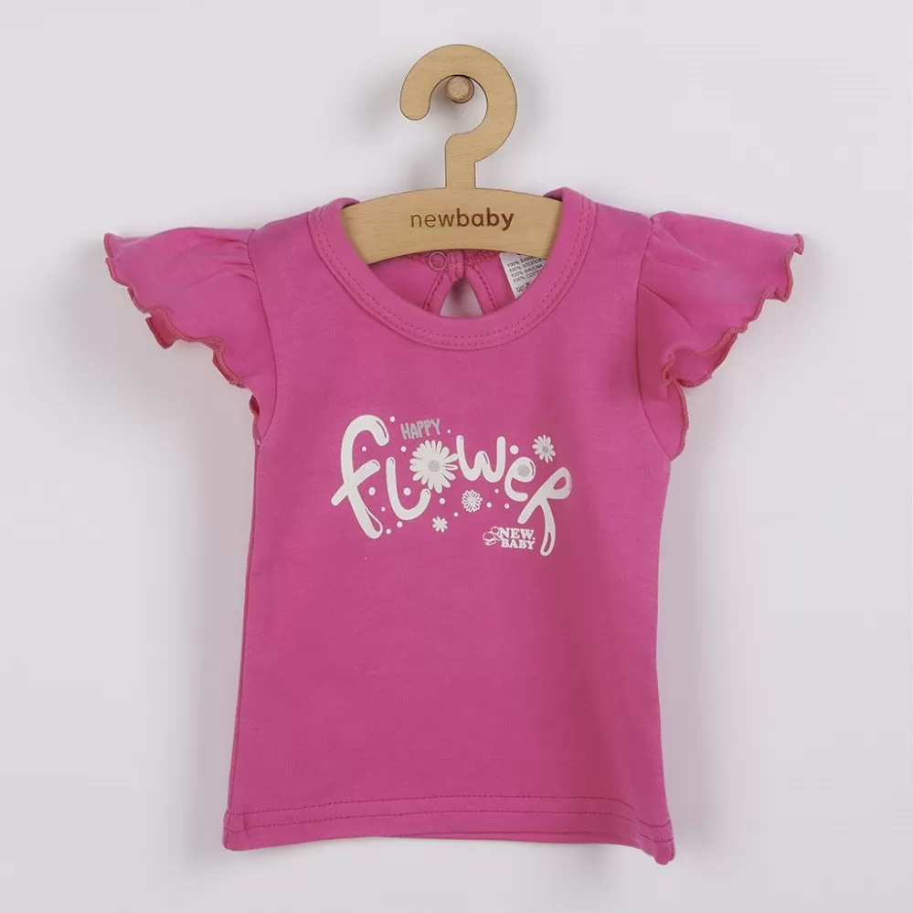 New Baby 2-dílná kojenecká bavlněná souprava Happy Flower tmavě New Baby Happy Flower Růžová
