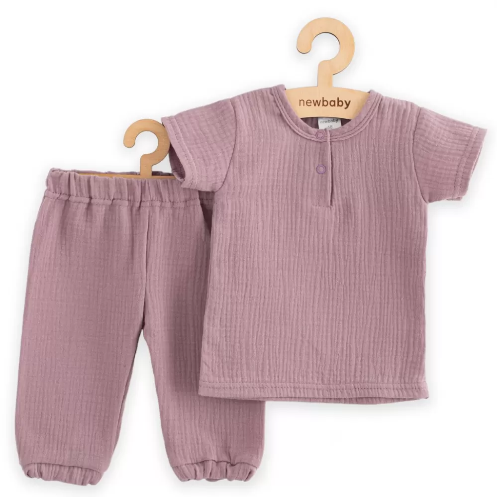 Stylová a praktická 2-dílná dětská souprava české značky New Baby. Mušelínová soupravička se skládá z trička s krátkým rukávem a kalhot. Velmi praktický set pro děti v jarních i letních dnech. Mušelínové tričko je velmi pohodlné už jen tím, že je vyrobeno z kvalitní a prodyšné mušelínové bavlny se zapínáním na cvočky pod krčkem. Mušelínové kalhoty s moderním střihem jsou velmi praktické, v pase a na nohavičkách je gumička, která netlačí.
