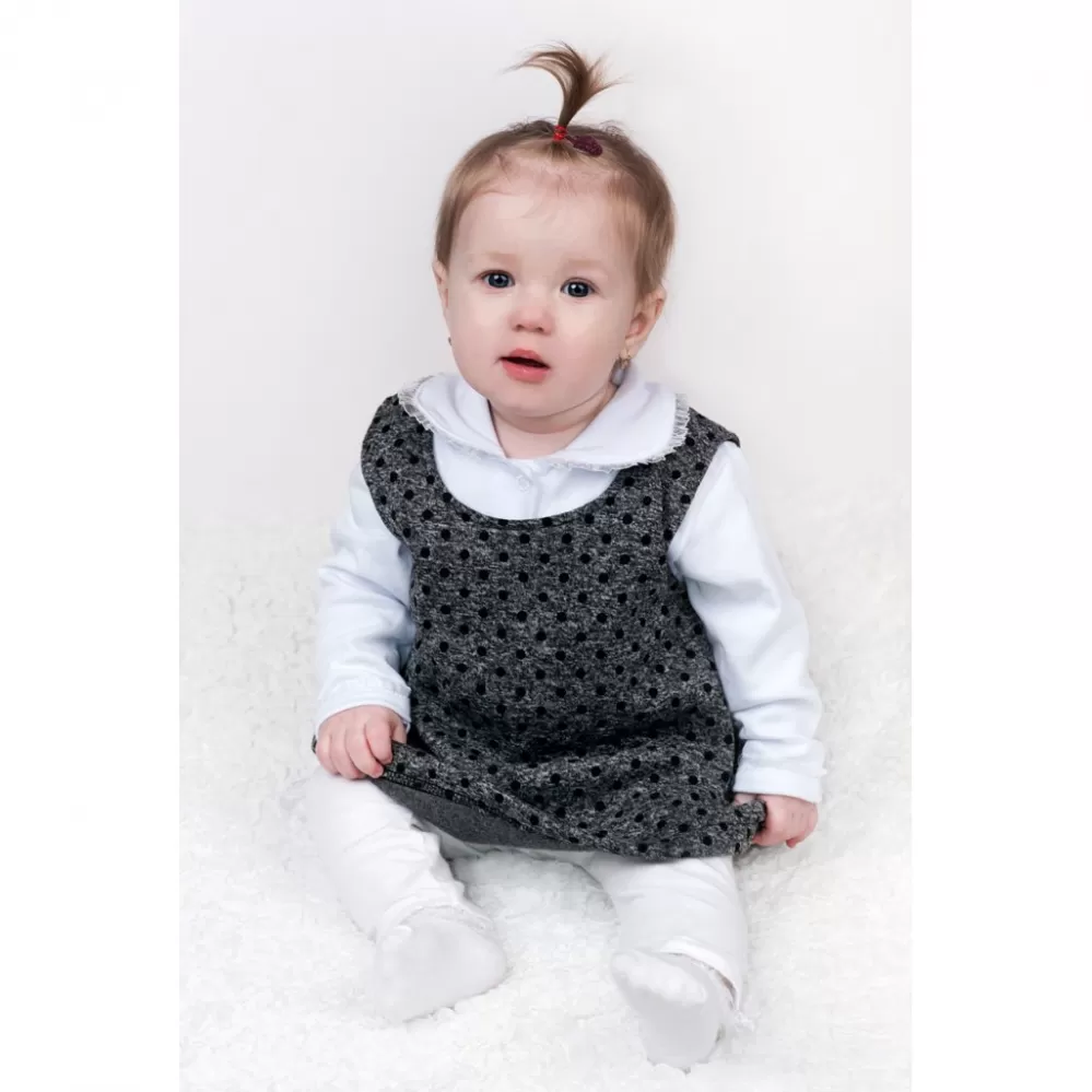 Krásná zimní tunika New Baby Princess. Tunika je z vnitřní strany počesaná a právě proto krásně hřejivá. Áčkový model tuniky je velmi praktický. Tunika je puntíkovaná a bez rukávu. K tunice doporučujeme zakoupit krásné body New Baby Princess. Složení: 80% bavlna, 20% polyester. Rozměry: obvod kolem hrudníku cca 54 cm, celková délka cca 33 cm.