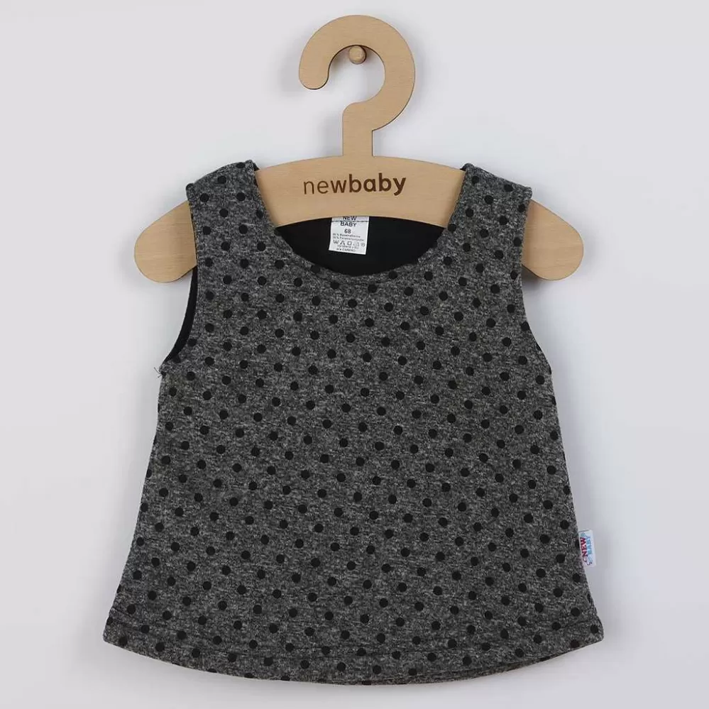 Krásná zimní tunika New Baby Princess. Tunika je z vnitřní strany počesaná a právě proto krásně hřejivá. Áčkový model tuniky je velmi praktický. Tunika je puntíkovaná a bez rukávu. K tunice doporučujeme zakoupit krásné body New Baby Princess. Složení: 80% bavlna, 20% polyester. Rozměry: obvod kolem hrudníku cca 58 cm, celková délka cca 35 cm.