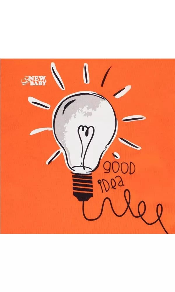 Bavlněné kojenecké tričko české značky New Baby Happy Bulbs. Tričko s dlouhým rukávem a barevným lemem okolo krčku, rukávů a v pase je celopotištěné vtipnými a šťastnými žárovkami s nápisem good idea. Zapínání na ramínku na cvoček usnadní oblékání. Tričko je vyrobené s ohledem na potřeby malých dětí s velmi příjemného materiálu. Složení: 100% bavlna.