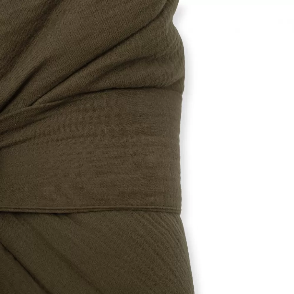 Mušelín je jedna z nejčistších, nejjednodušších a nejjemnějších tkanin na světě. A čím je tak vyjímečný ? Především jeho prodyšností. Lehká struktura umožňuje mušelínu „dýchat“ a zajišťuje dostatečnou cirkulaci vzduchu, čímž snižuje riziko přehřátí. Mušelín je velmi odolný a to tak, že bez problémů zvládá opakované praní a postupem času je ještě lehčí a jemnější.