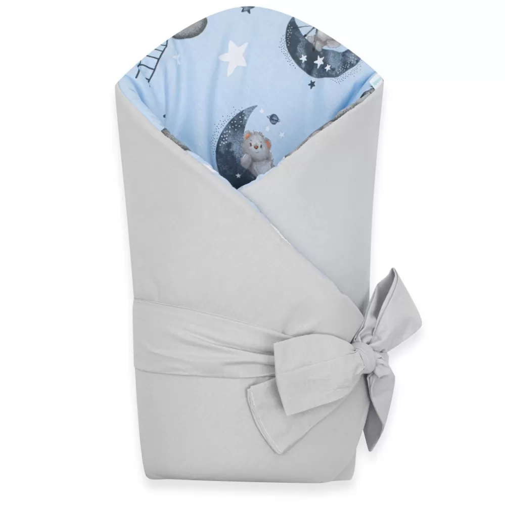 Nádherná dětská oboustranná zavinovačka české značky New Baby Teddy bear in space pro miminka. Zavinovačka je vyrobena z kvalitního a jemného materiálu, který zaručí vašemu miminku příjemné teplo. Výplň je až 3 cm co znamená, že zavinovačka je vhodná i na chladnější dny a je dostatečně pevná. Krásný dětský motiv, polahodí dětským očičkám. Zapínání na suchý zip i pásek na zavázaní na mašli.